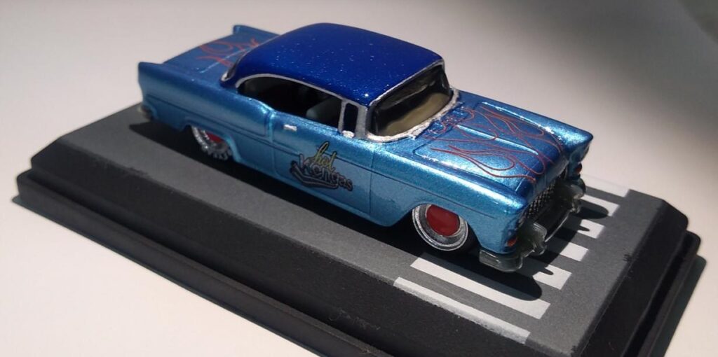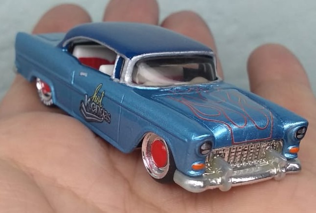 O Modelo 55 Chevy estreou no Casting Hot Wheels no ano de 2006 dentro da Série Collectors Hot Wheels Classics (Series 2) e a versão na escala 1/64 foi uma criação do Designer Master Hot Wheels Larry “The Legend” Wood.