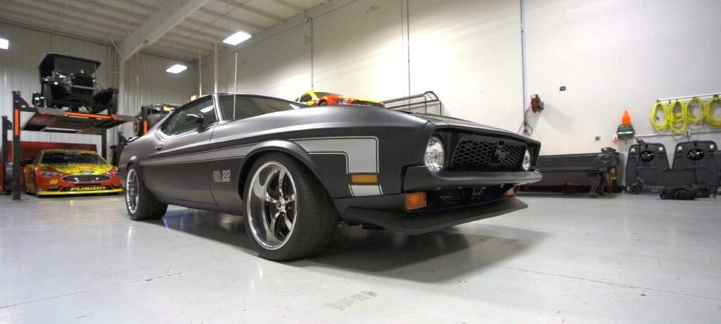 Para começar o Mach 1 foi equipado com um motor COYOTE V8 SUPERCHARGED de 5.0 Litros, gráficos personalizados foram criados mostrando o número 22, Mach 22, que é o número do seu carro nas corridas da NASCAR, uma pintura preta fosca que marca vários dos carros de sua coleção.