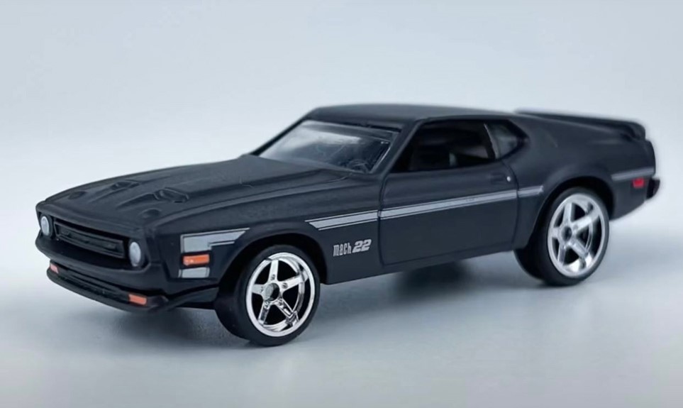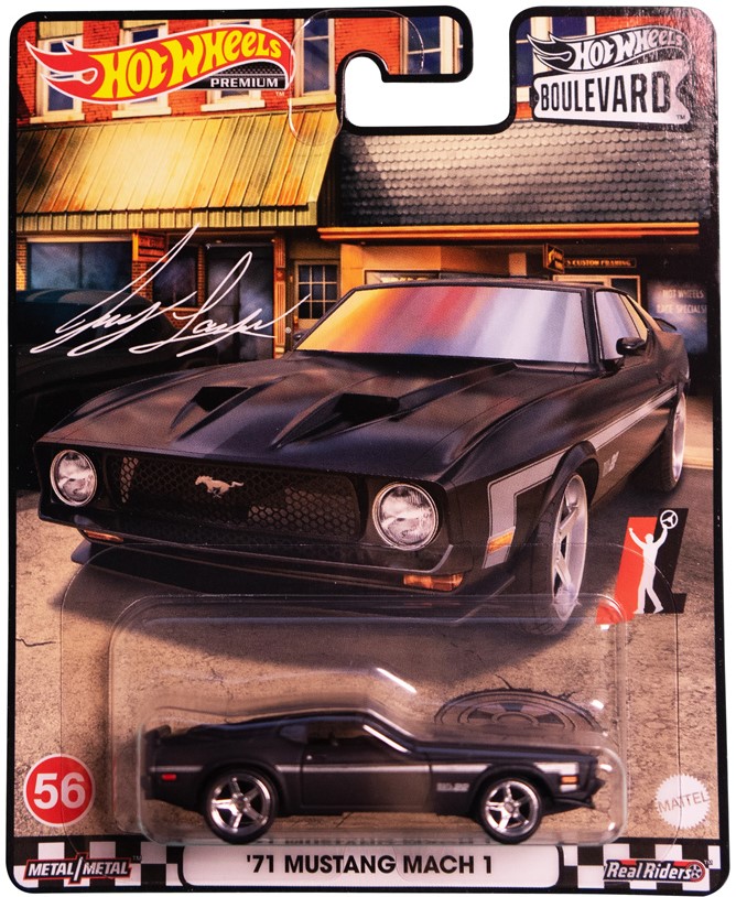 A Hot Wheels lançou um Mix este ano de 2022 na Série Collectors Hot Wheels Boulevard e dentre os cinco modelos deste Mix, passou meio que desapercebido por alguns, o ‘71 Mustang Mach 1, que recebeu o nome de Mach 22 e que na realidade foi inspirado em um modelo real personalizado exclusivamente para o Piloto e Bi-Campeão da NASCAR Joey Logano, se repararem no blister da miniatura vão encontrar duas dicas, a primeira é o autógrafo do piloto na parte superior esquerda e a segunda é a sua logo pessoal.