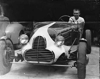 At 16, Dick bought a 1941 Hupmobile for $ 25 USD, this was his first car, his father gave up a room inside the store, as a workshop so he could work on his car, Dick took 2 years to leave the old man Hupmobile ready, when the body was finished, Billl Hines painted the car red.