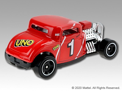 Uma das curiosidades legais sobre um dos modelos, o ’32 Ford é que ele é apresentado na cor e com a comunicação visual do Jogo UNO, criado pela Mattel e que este ano esta completando 50 anos de aniversário.