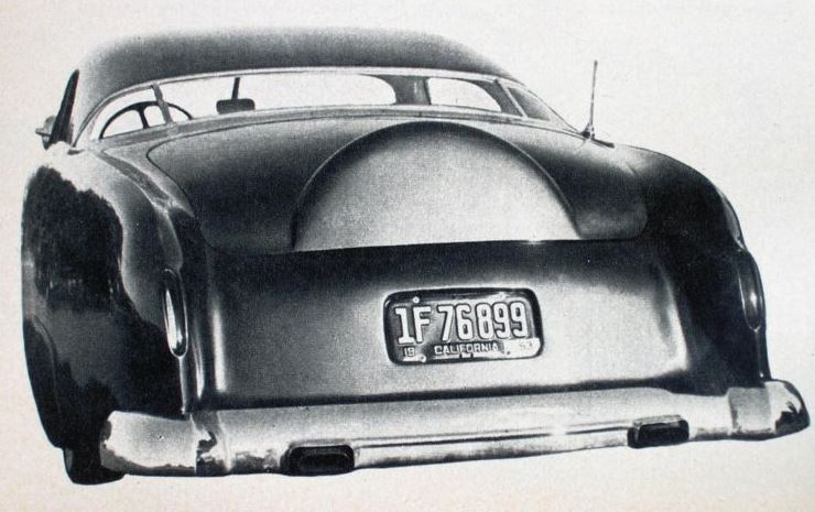 Os Cantos superiores dos painéis laterais foram esticados e arredondados em direção ao conjunto de lanternas traseiras que foram personalizadas feitas com Lucite Vermelho. Joe não se esqueceu da Placa, e como acompanhamos nos dias de hoje, nas oficinas atuais, que usam o seu conceito até hoje, a Placa foi embutida na carroceria, iluminada de cima para baixo e também protegida por acrílico.
