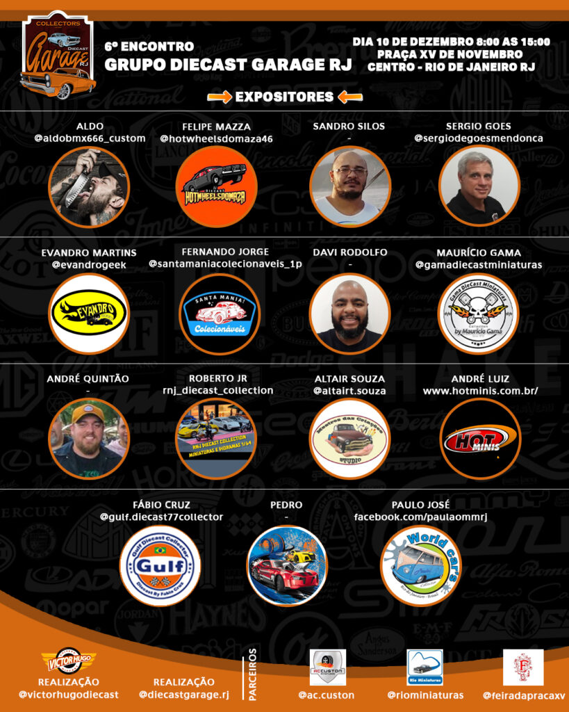 No próximo dia 10 de Dezembro de 2022 será realizado na cidade do Rio de Janeiro, RJ, o 6º Encontro do Grupo Diecast Garage RJ.