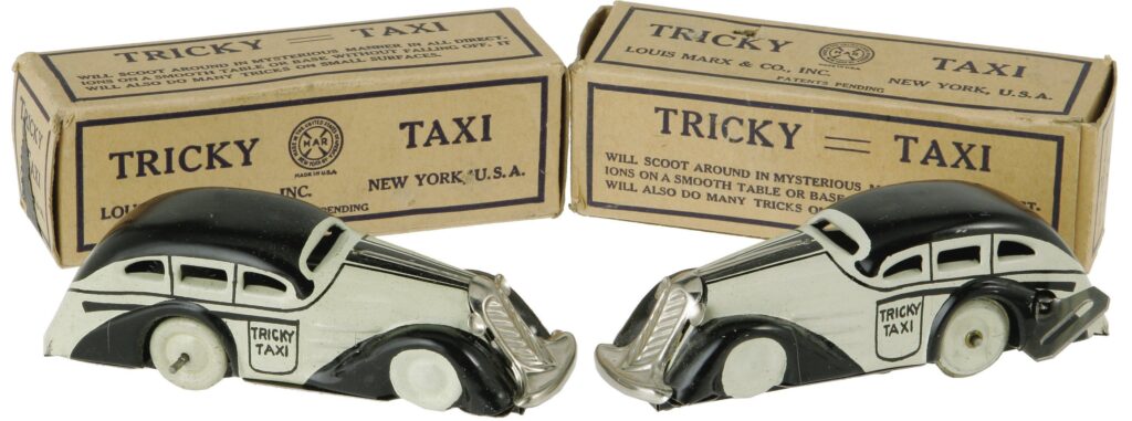 A Marx Toys também produziu vários Tanques de Estanho Litografado, e ainda Aviões, Motocicletas da Policia, Tratores, Navios de Luxo, e Foguetes com cores brilhantes, miniaturas de carros foram feitas várias, O Tricky Taxi foi inspirado em um brinquedo Heinrich Muller de Nuremberg, um modelo muito bem concebido.