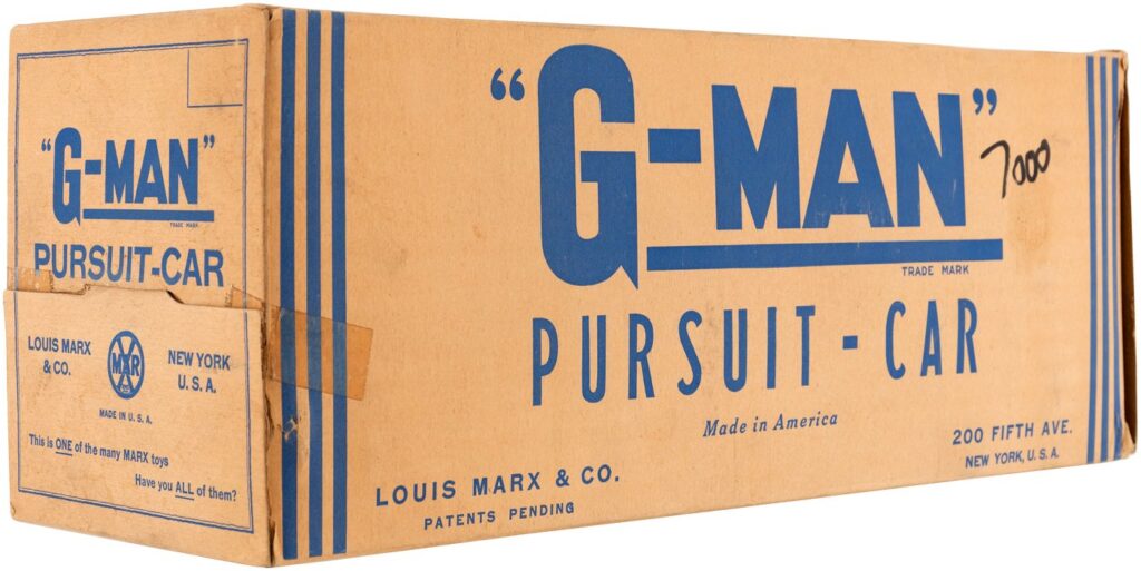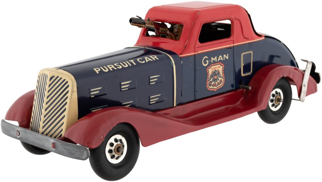 Na década de 1935, a Policia tinha um veículo que era especialmente utilizado para perseguição de veículos de fuga de bandidos, eles criaram o G-Man, e este modelo possivelmente foi o maior veículo que a Marx Toys fez e tinha 14,5 Polegadas e Meia de comprimento.