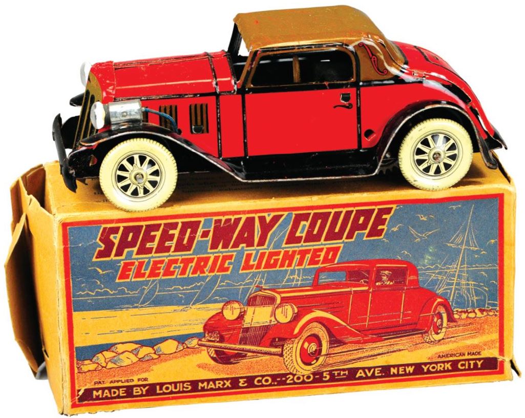 A Marx Toys também criaram e fabricaram veículos, e no pré-guerra o material utilizado era o Ferro Fundido, mas este tipo de material era difícil de manejar e não era adequado para modelos detalhados e de proporções menores, e foi assim que ele foi substituído pelo estanho Prensado, a Marx Toys a partir dai ofereceu uma variedade muito grande de veículos em miniatura, com uma gama muito grande, fabricaram de carrinhos a Dirigíveis.