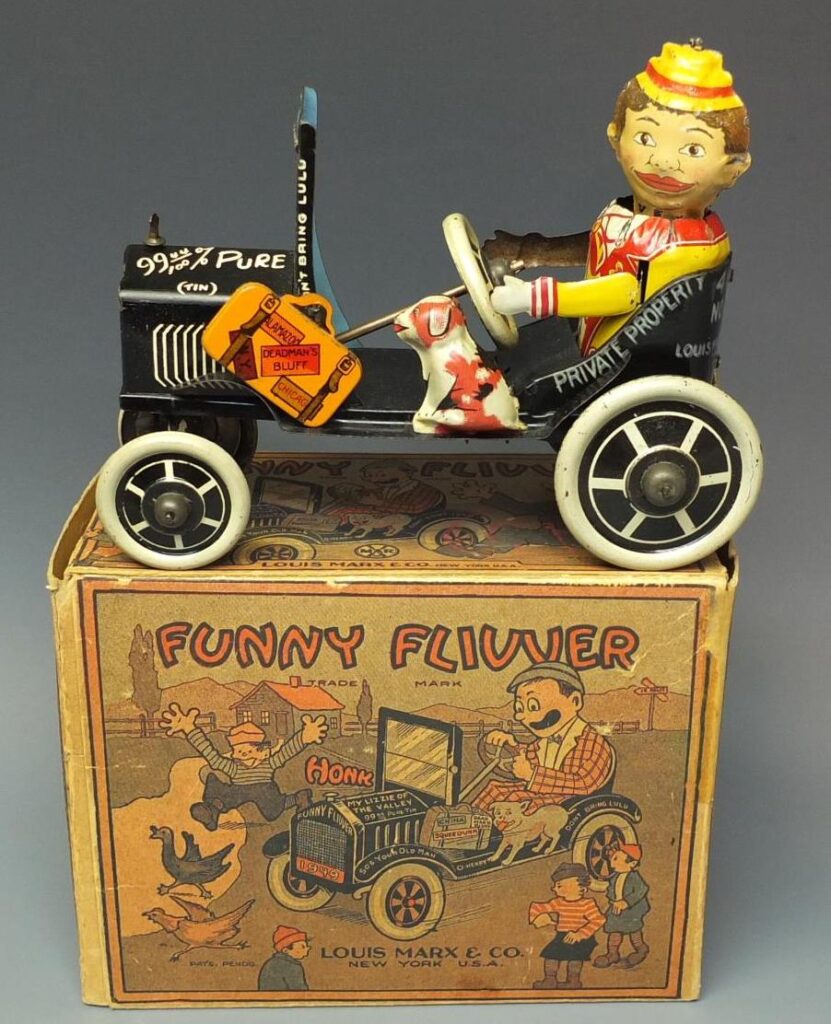 Muitos dos veículos criados por eles eram muito populares, eram os Crazy Cars, como o Funny Flivver e o Fugitivo Joy Riders, um dos brinquedos de lata muito procurado foi o Amo´s Andy Ford Modelo T Quatro, bem como um outro modelo T com motorista aparentemente em um passeio europeu, com porta-malas carregando vários nomes de cidades europeias, este modelo foi produzido com uma variedade de cores.