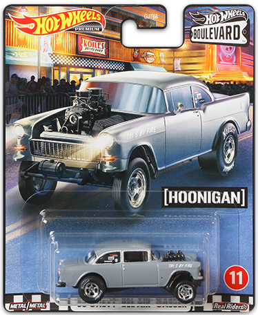 Falando do 1955 Chevy Bel Air Gasser foi um projeto desenvolvido pela Garage Hoonigan na sua divisão Custom, e inspirado neste projeto o modelo foi inserido no Mix 3 da Série Collectors Hot Wheels Boulevard, estas parcerias entre Oficinas, Garagens, e Customizadores que fazem parte da Cultura Custom Americana sempre são ressaltados em inúmeras coleções da marca.