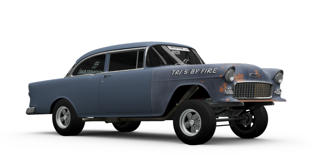 Este modelo, o 1955 Chevy Bel Air Gasser tem a inscrição Hoonigan em sua cartela, e para quem não conhece, a Hoonigan é uma empresa que atua em vários segmentos relacionados com o Desenvolvimento, Construção, Fabricação e Competições Automobilisticas Radicais com a sua Equipe Hoonigan Racing Division que teve como uma de suas principais estrelas o Piloto Radical Ken Block.