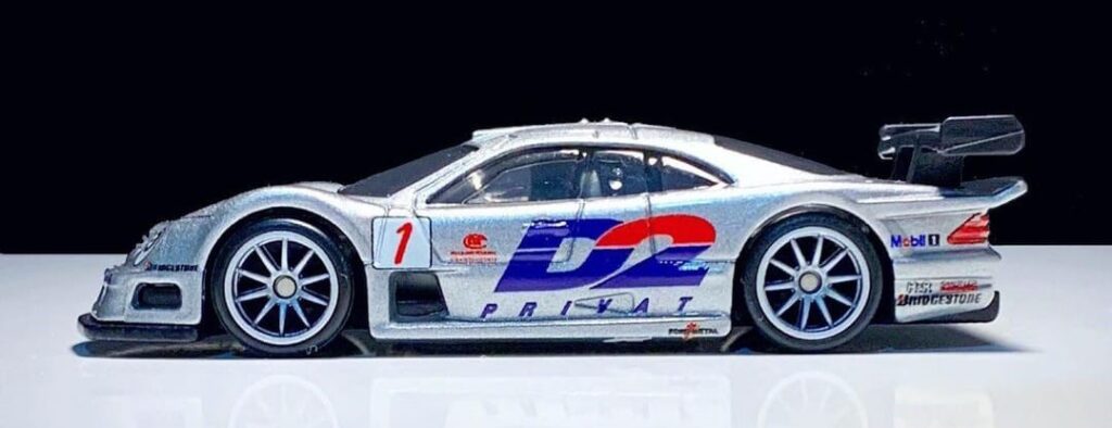 E falando do conceito de Hot Wheels Premium, mas um grande set de modelos, muito bem concebido, e com um olhar muito atento ao tratamento no acabamento, nas linhas aerodinâmicas e nas características principais de cada modelo, enriquecendo ainda mais o Casting Hot Wheels com modelos que agradaram colecionadores de todas as vertentes e de todas as partes do mundo, neste conjunto formado por cinco miniaturas, vamos destacar o modelo 1997 Mercedes-Benz CLK-GTR um dos grandes das pistas, mesmo durante o curto período que competiu.