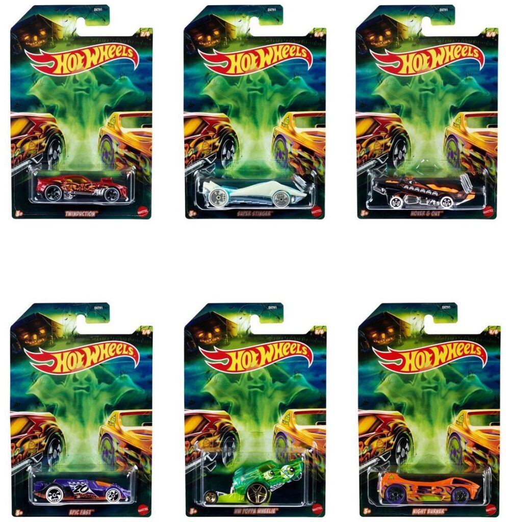 Novidades na Área, devem estar disponíveis já para este mês, mais uma coleção de temáticos legitimamente americanos, Hot Wheels Series Halloween 2020, esta set é formado por seis modelos, e a aposta é nas crianças, lembrando que Hot Wheels via de regra. e principalmente os básicos tem o foco nas crianças, e estes modelos foram escolhidos para atrair a atenção delas, principalmente através da comunicação visual característica do tema, como eles tem a tradição “Doces ou Travessuras” estes modelos podem fazer parte das sacolinhas junto com os doces.