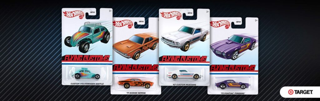 Nos últimos dias foi divulgado o primeiro lote de 2021 da Série Hot Wheels Flying Customs exclusivo para as Lojas Target nos EUA, baseada na antiga Série Hot Wheels Flying Colors que surgiu pela primeira em no ano de 1974, e se repararem a comunicação visual e a decoração dos modelos reflete o estilo daquela época, no ano de 2013 a Hot Wheels lançou a Série Flying Customs, então esta série foi re-estilizada trazendo estas referências nostálgicas da década de 1970 para decorar esta primeira wave para 2021.