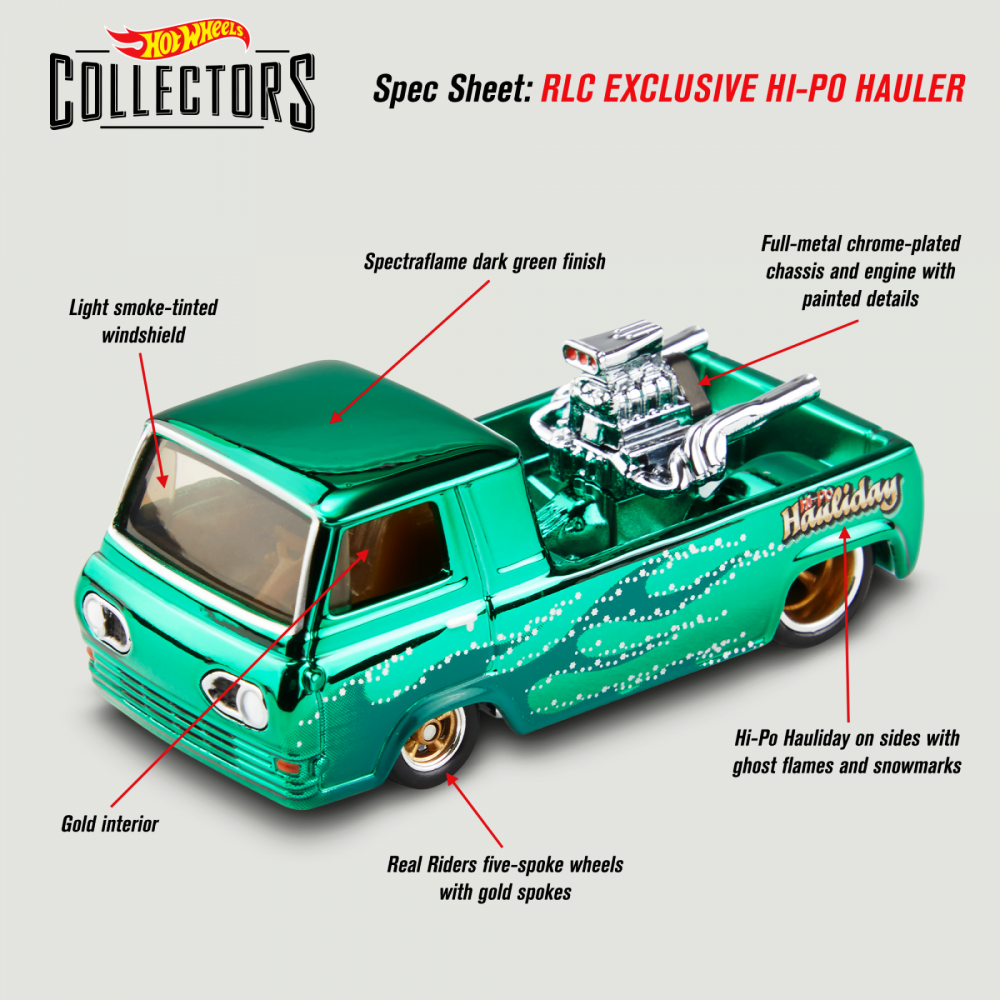 Em 2018, o HWC produziu pela primeira vez uma versão Premium deste modelo na escala 1/64 em colaboração com a Gas Monkey Garage, e agora neste ano de 2020 o modelo ressurge para celebrar a temporada de férias e festas do final de ano com o nome de RLC Exclusive Hi-Po Hauler Hauliday, modelo que teve a sua versão na escala 1/64 criada pelo Designer Master Hot Wheels Brendon Vetuskey e estreou já como modelo exclusivo no Red Line Club.