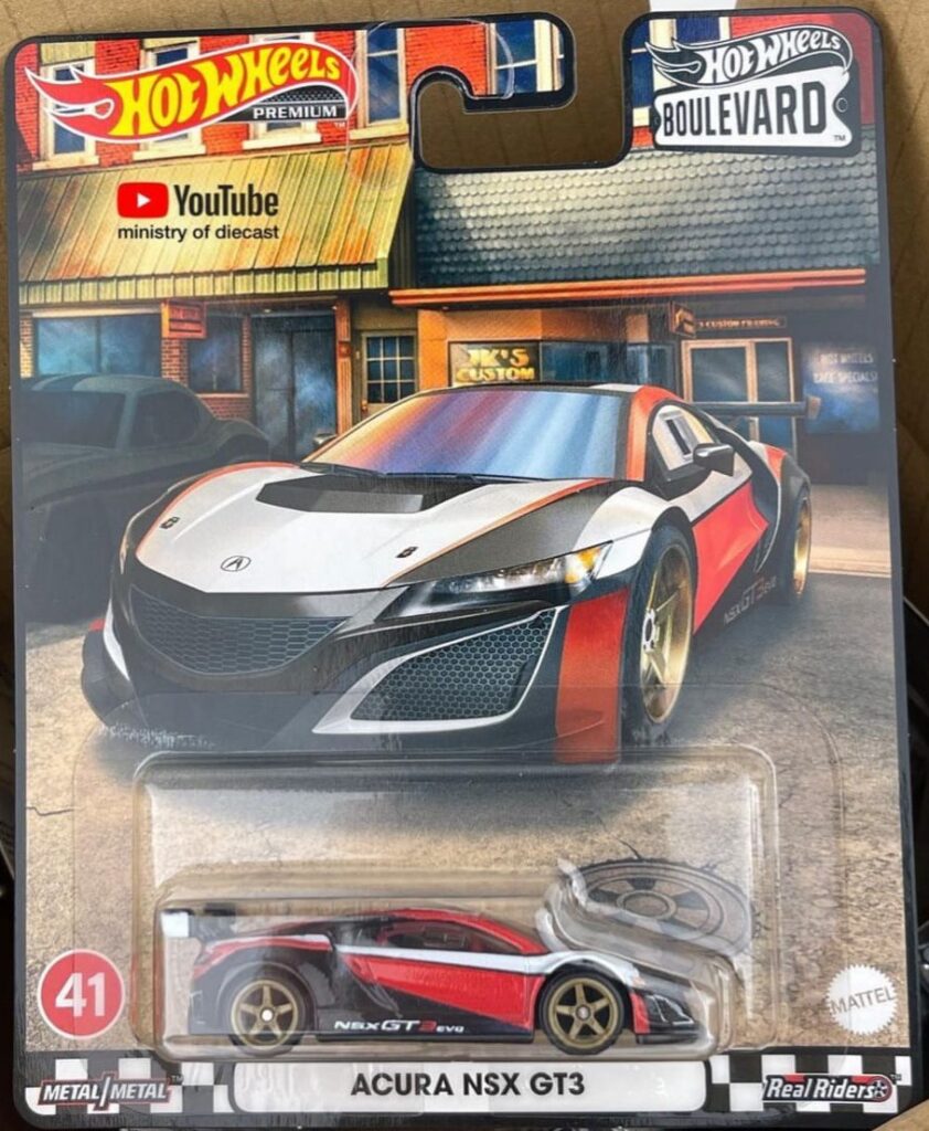 ACURA NSX GT3 este modelo estreou no Casting Hot Wheels no ano de 2019 na Série Collectors Hot Wheels Replica Entertainment e a sua versão na escala 1/64 foi uma criação do Designer Master Hot Wheels Mark Jones.