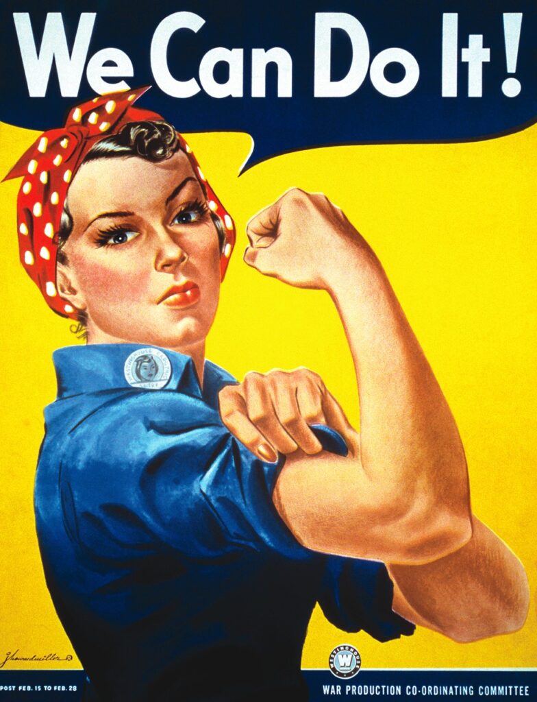 O Cartaz criado por J. Howard Miller, encomendado pela Westinghouse, que retratava Rosie, a Rebitadeira, trazia a frase “We Can Do It!” “Nós Podemos Fazer Isso” , e continha a imagem de uma mulher que por muitos anos, achava-se que era da modelo Geraldine Doyle, que durante o ano de 1942 trabalhou como operária na fábrica American Broach & Machine Co.. anos depois descobriram que a operária que inspirou o cartaz lendário havia sido da também operária Naomi Parker Fraley que trabalhava na Base Naval de Alameda, na Califórnia.