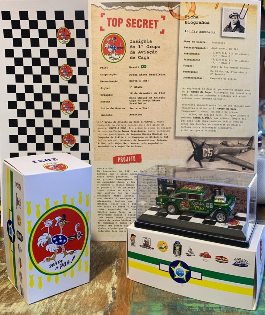 A Alessandra e o Eduardo da Special Designs Decais produziram os Decalques e a parte de impressão gráfica e criaram a caixa que embala o case onde estão acondicionadas cada miniatura.