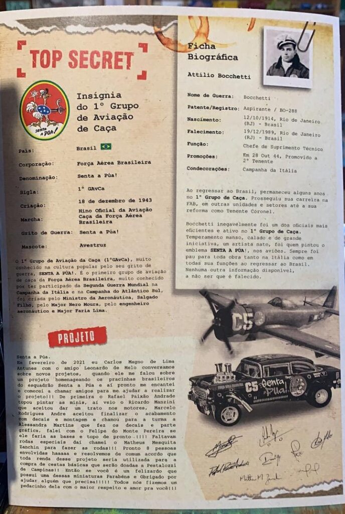 A História teve o seu início em Fevereiro de 2021, O Carlos Magno estava voltando a customizar, e encantado com as suas criações e com o reconhecimento do meio, estava sempre envolvido em algum projeto novo, e ai um dia conversando com Leonardo Melo, Designer Gráfico carioca muito conhecido no Brasil, principalmente por seus trabalhos ligados ao desenvolvimento de Logos e artes para decalques, e sendo muito requisitado por alguns dos melhores customizadores tupinikins. O Leo comentou com o Magno sobre um projeto para homenagear os Pracinhas Brasileiros que fizeram parte do Esquadrão Senta Pua.
