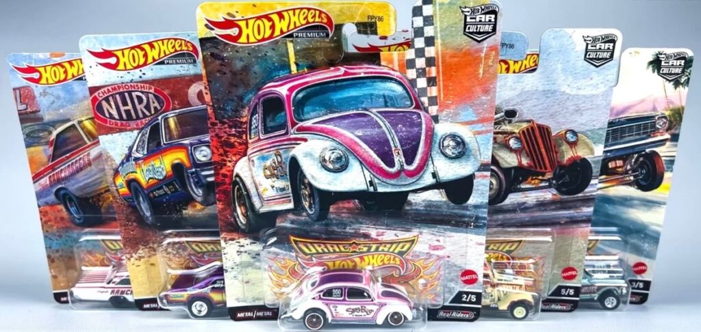 Nas últimas semanas foi lançado oficialmente pela Hot Wheels mais uma WAVE da Série Collectors Hot Wheels Car Culture, desta vez foram os Dragstrip Demons, 05 (Cinco) modelos todos em Metal Metal, Grafismos muito bem acabados, detalhamento de Faróis Lanternas, Grades, Para-Choques, Motores, Rodas Real Riders de Diversos Tipos, Pneus de Borracha de Diversas Bandas.
