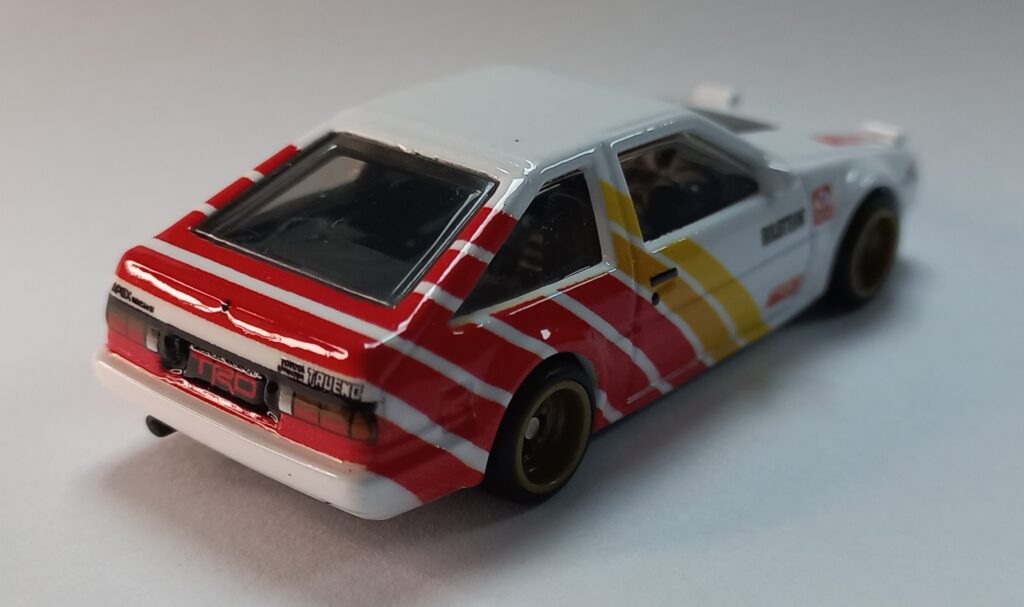 Este modelo muito embora seja semelhante ao modelo mais antigo do Toyota AE-86 Corolla que foi projetado pelo Designer Hot Wheels Jun Imai, é um modelo inteiramente novo, ficou maior no seu cumprimento, o mais antigo se aproximava dos modelos que competiam no Campeonato Britânico de Carros de Turismo durante os anos de 1980.