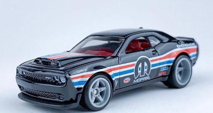 ’18 Dodge Challenger SRT Demon é um modelo lançado na Série Básica Hot Wheels dentro da Sub-Série Factory Fresh no ano de 2018 sendo uma criação do Designer Master Hot Wheels Brendon Vetuskey.
