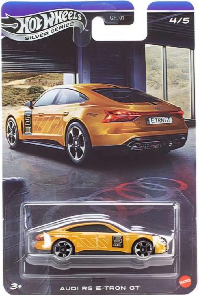 . - Audi RS e-tron GT, modelo que estreia no Casting da Hot Wheels no ano de 2022 na Série Básica Hot Wheels dentro da subsérie HW Green Speed e a sua versão na escala 1/64 foi uma criação do Designer Hot Wheels Lindsey Lee.