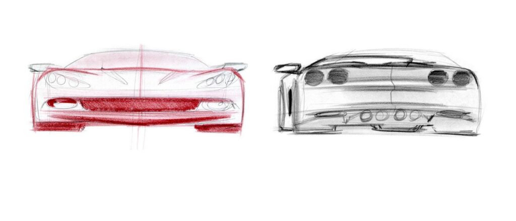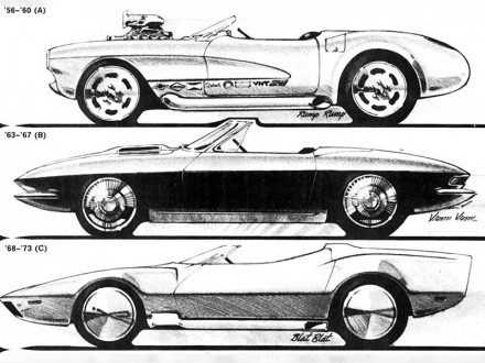 Tom criou um modelo Vermelho, John desenvolveu um modelo C5 Preto e o estúdio da Califórnia fez uma versão de corridas com um modelo V6.