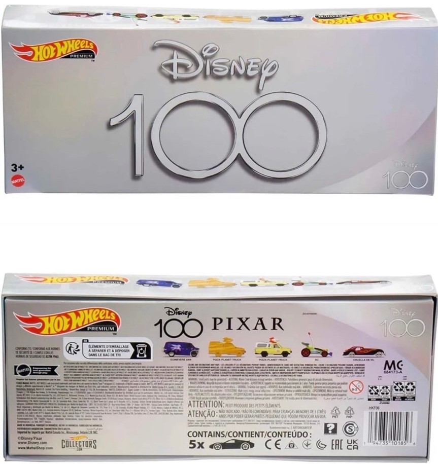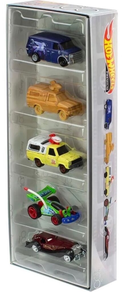 Um destes produtos é o Pack 5 Pixar Disney 100 Hot Wheels Premium 2023, entre os 5 modelos temáticos citamos: Onward, Brave, Toy Story, RC Car e 101 Dalmatas todos em versão Collectors.